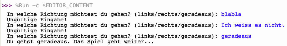 auswahl = input('In welche Richtung möchtest du gehen? (links/rechts/geradeaus): ')