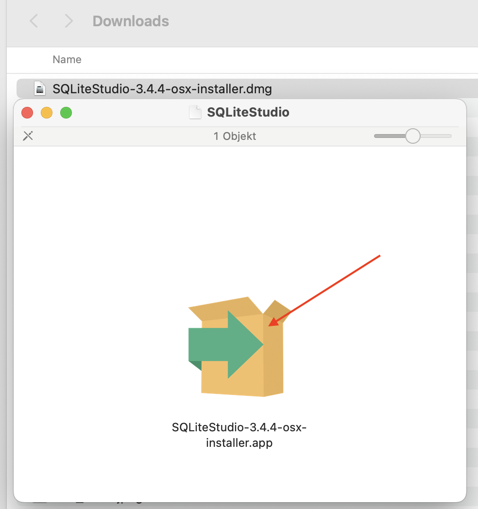 - Führen Sie die heruntergeladene Datei aus, indem Sie sie im Downloads-Ordner suchen und darauf doppelklicken. Es öffnet sich folgendes Fenster, in welchem Sie das Box-Symbol ebenfalls nochmal doppelklicken müssen: