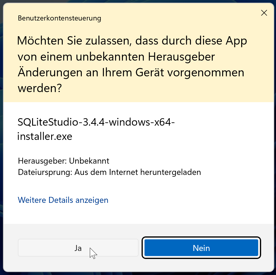 - Klicken Sie bei der folgenden Sicherheitswarnung auf "Ja":