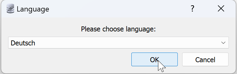 - Wenn Sie SQLiteStudio zum ersten Mal öffnen, wählen Sie die Sprache Deutsch aus: