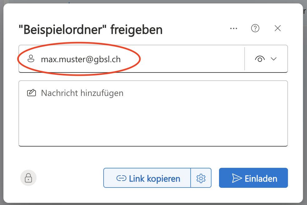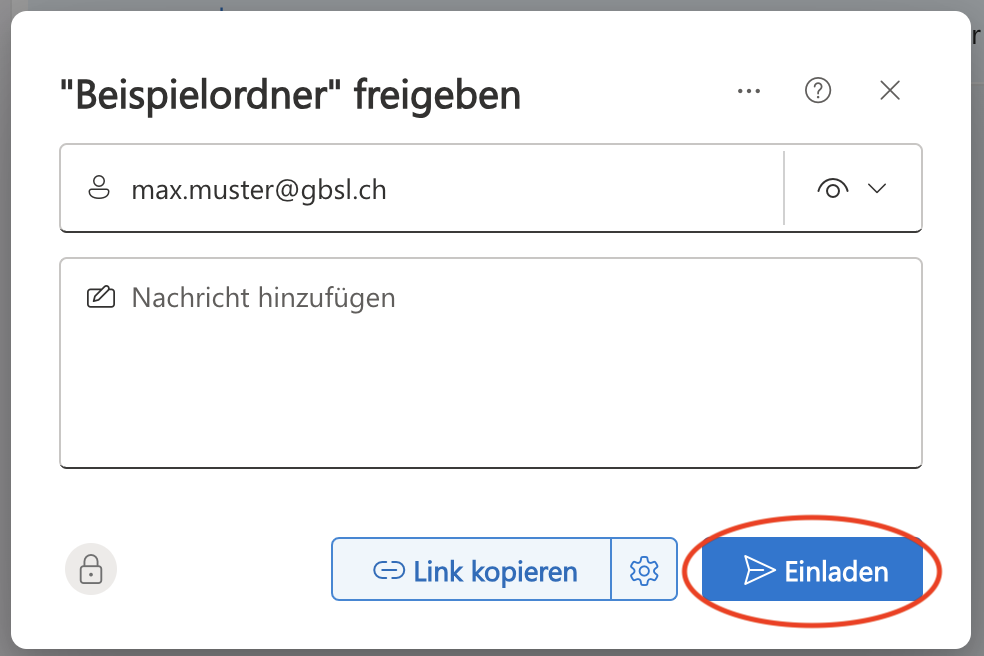 - Klicken Sie zum Schluss auf Einladen, damit die entsprechenden Personen eine Email mit der Einladung zum geteilten Ordner erhalten: