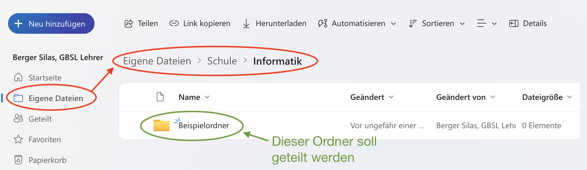 Sie können einen OneDrive-Ordner teilen, um ihn anderen Personen zur Verfügung zu stellen. Das ist beispielsweise praktisch für kollaborative Projekte oder für gewisse Abgaben.