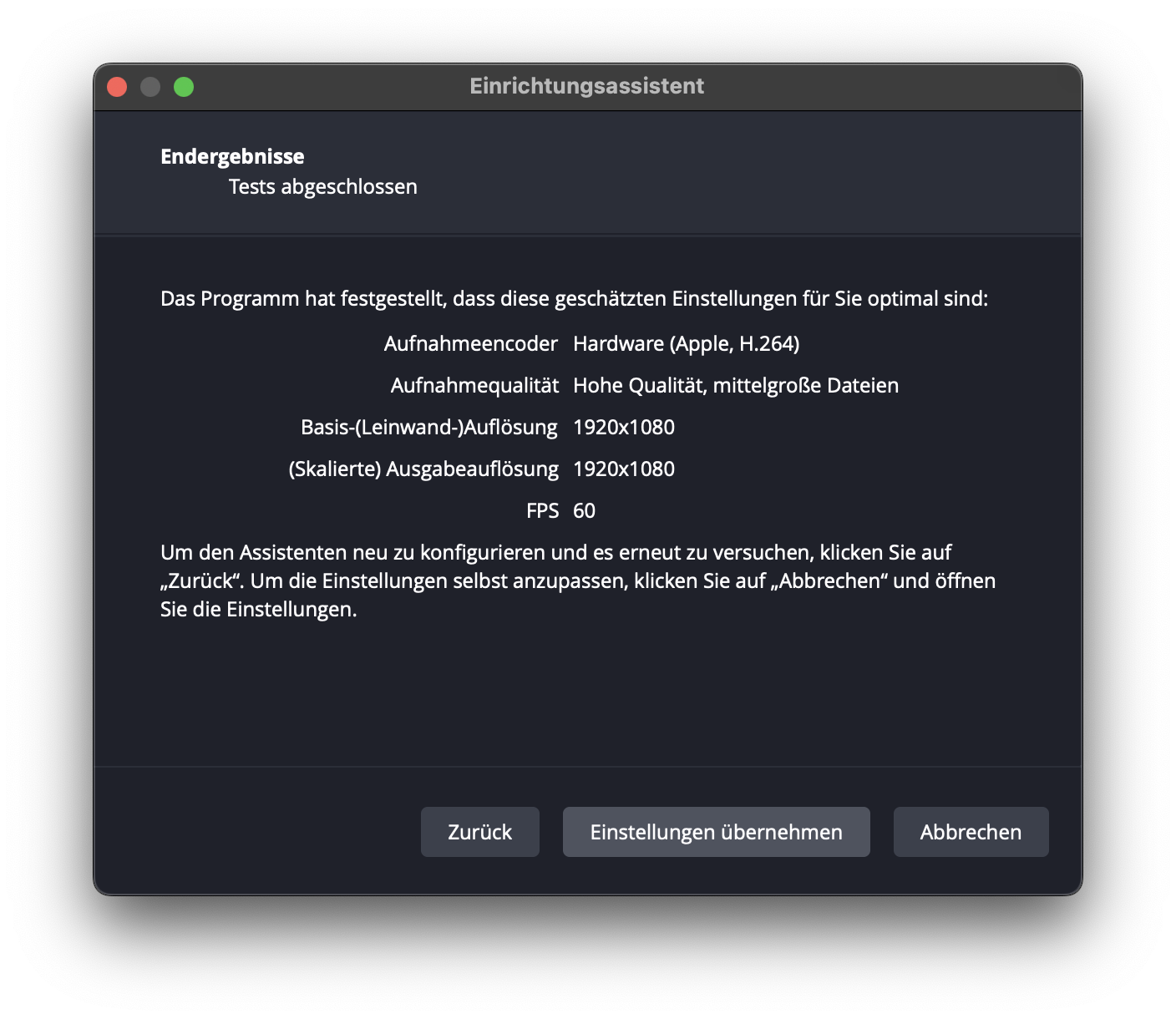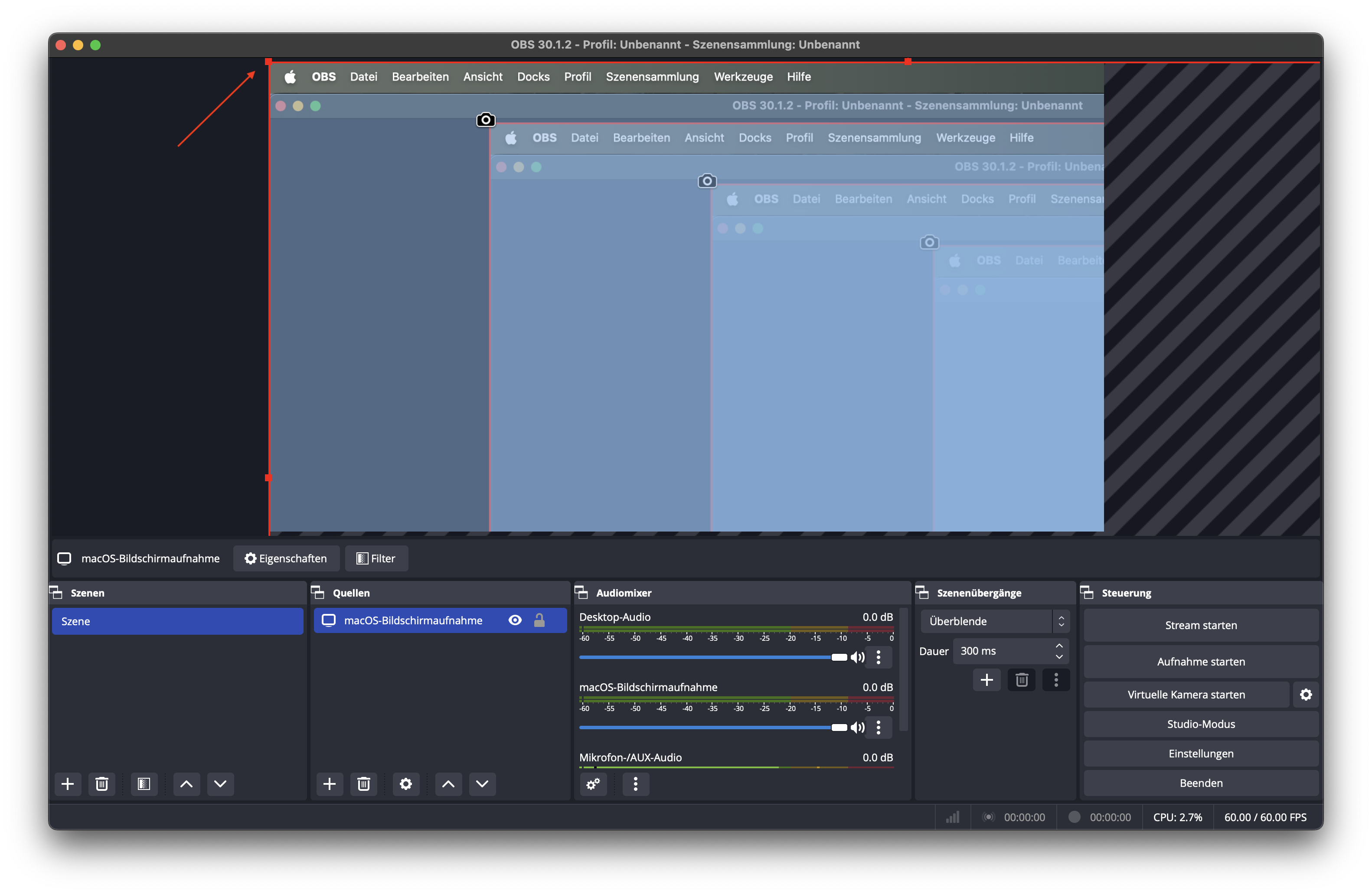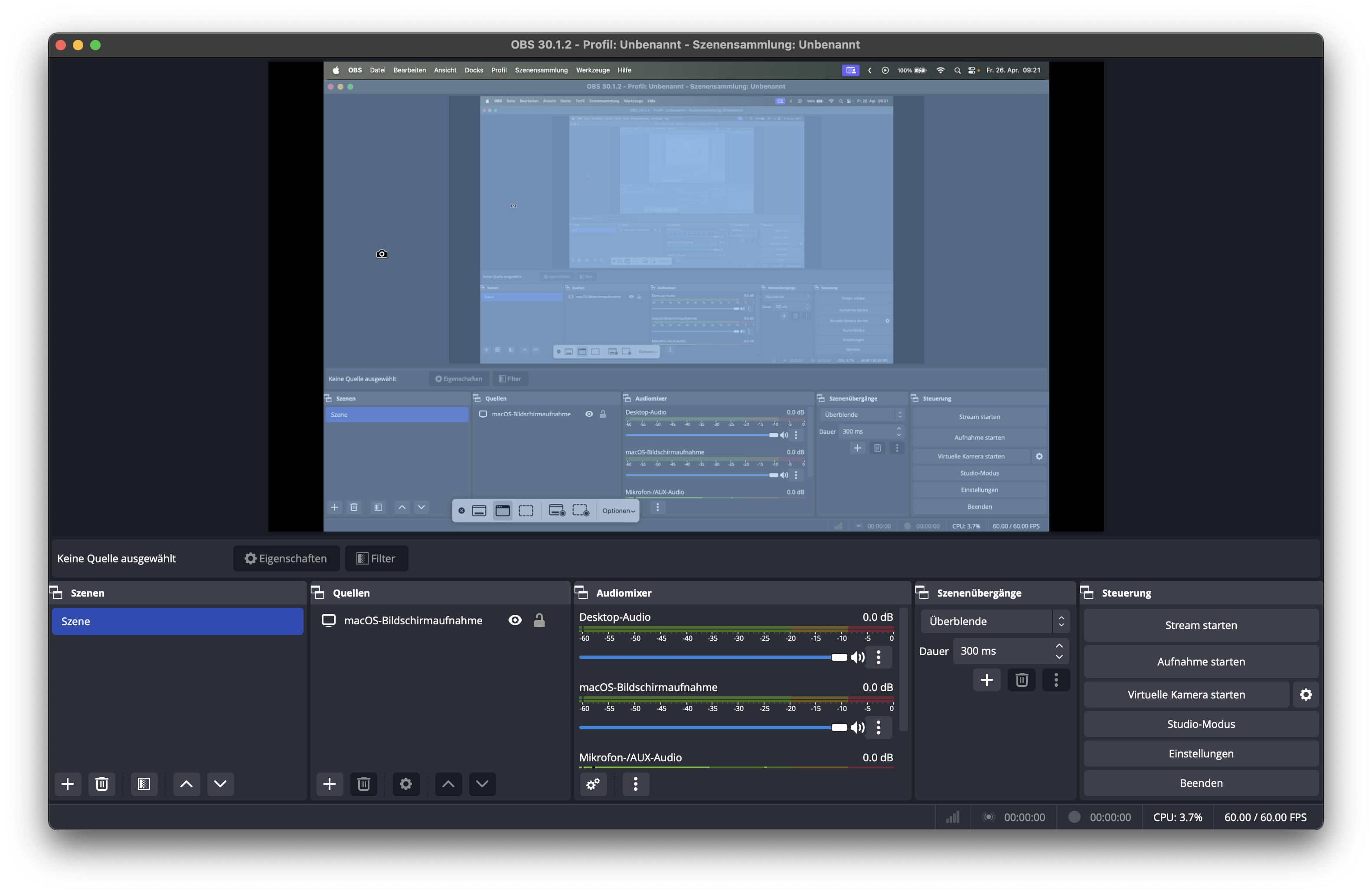 Ihre Einstellungen werden automatisch gespeichert. Wenn Sie OBS schliessen und wieder öffnen, müssen Sie diese Einrichtung nicht nochmal vornehmen.