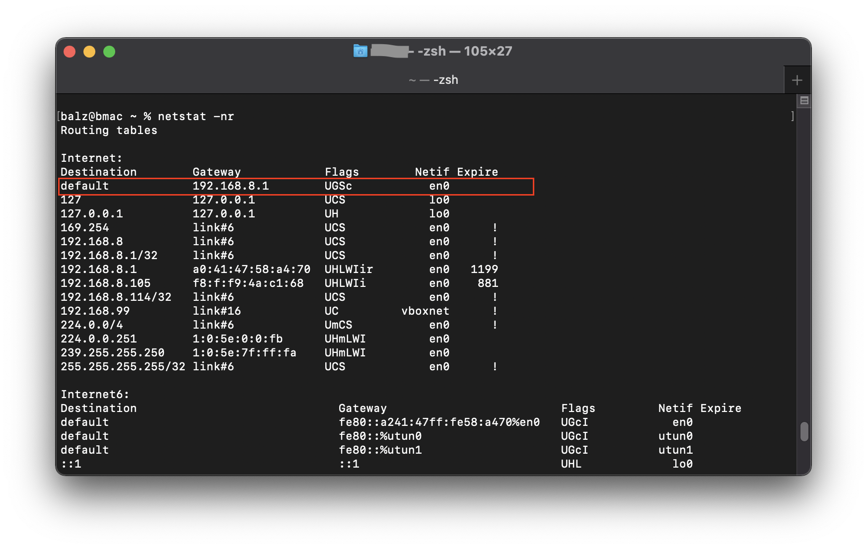 Der Befehl traceroute (macOS) resp. tracert (Windows) kann diese Route nachverfolgt werden. Dabei werden die Zwischenstationen – also dort wo das Paket entpackt und gemäss Ziel-IP-Adresse weitergeleitet wird – angezeigt.